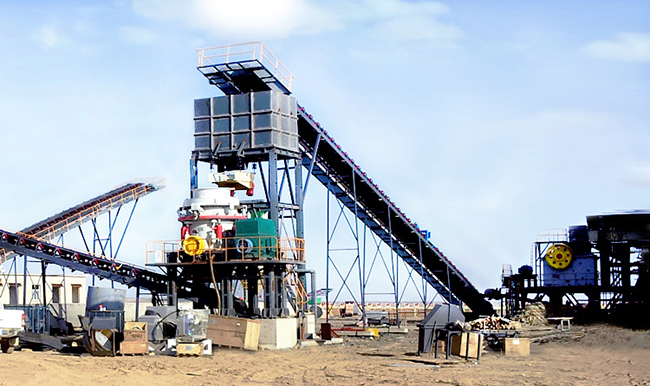 螢石錘式破碎機主要由機架、傳動裝置、轉子和柵網組成。